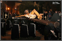 La tarde del Viernes Santo, comenzaba con la procesión de Nuestra Señora de la Soledad y María Magdalena, que las 19´15 horas, salia de su templo de San Millán. La subida de la Soledad, por la cuesta de la Merced, es uno de los momentos álgidos de nuestra Semana Santa. Este año no iba a ser menos, la Virgen acompañada por los Hermanos de la Cofradía y bastantes fieles que corren a su lado, alientan a los Costaleros que impulsan a la Virgen hasta encumbrar la cuesta. Vítores y aplausos se escuchan el la partes baja de la calle Fuente Seca. Todos se abrazan tras subir a la "Sanmillanera", ahora es turno para cantar saetas, y se escuchan desde los balcones, mientras los costaleros balancean a la Virgen. En esos momentos aparece las primeras gotas de agua, pero ya sabemos que esta cofradía, eso no le impide parar, y hacen su recorrido hasta llegar a Santa María. Antes de comenzar la procesión de la Soledad, ya era oficial que la procesión General estaba suspendida. Así que la Soledad y el Santo Entierro, habían acordado salir juntos, siempre que el tiempo no lo impidiera.